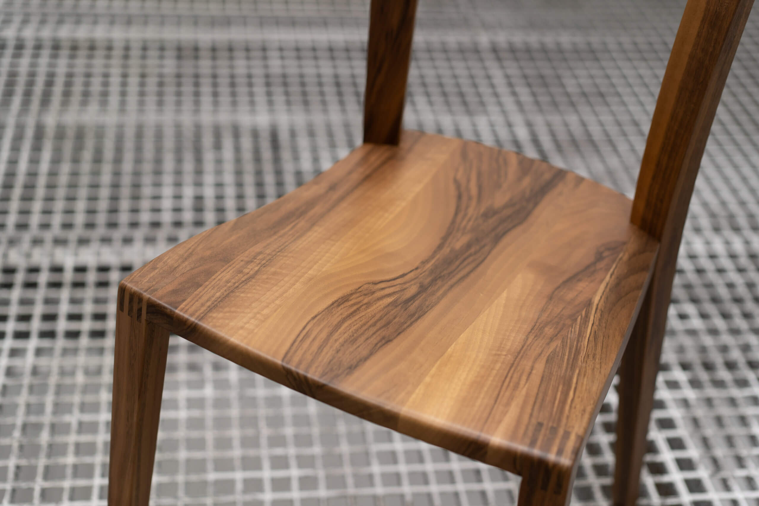 Der Stuhl ist handwerklich gesehen von höchster Qualität. In Serie ist der Stuhl aufgrund einiger Details anspruchsvoll zu fertigen. Aber dank unserer 5-Achs Technologie und unserem langjährigen Knowhow ist es möglich den Stuhl mindestens teilweise industriell zu fertigen. Vor allem die präzisen Verbindungen zwischen Sitzfläche und Vorder- sowie Hinterbeinen sind dabei eine Herausforderung.